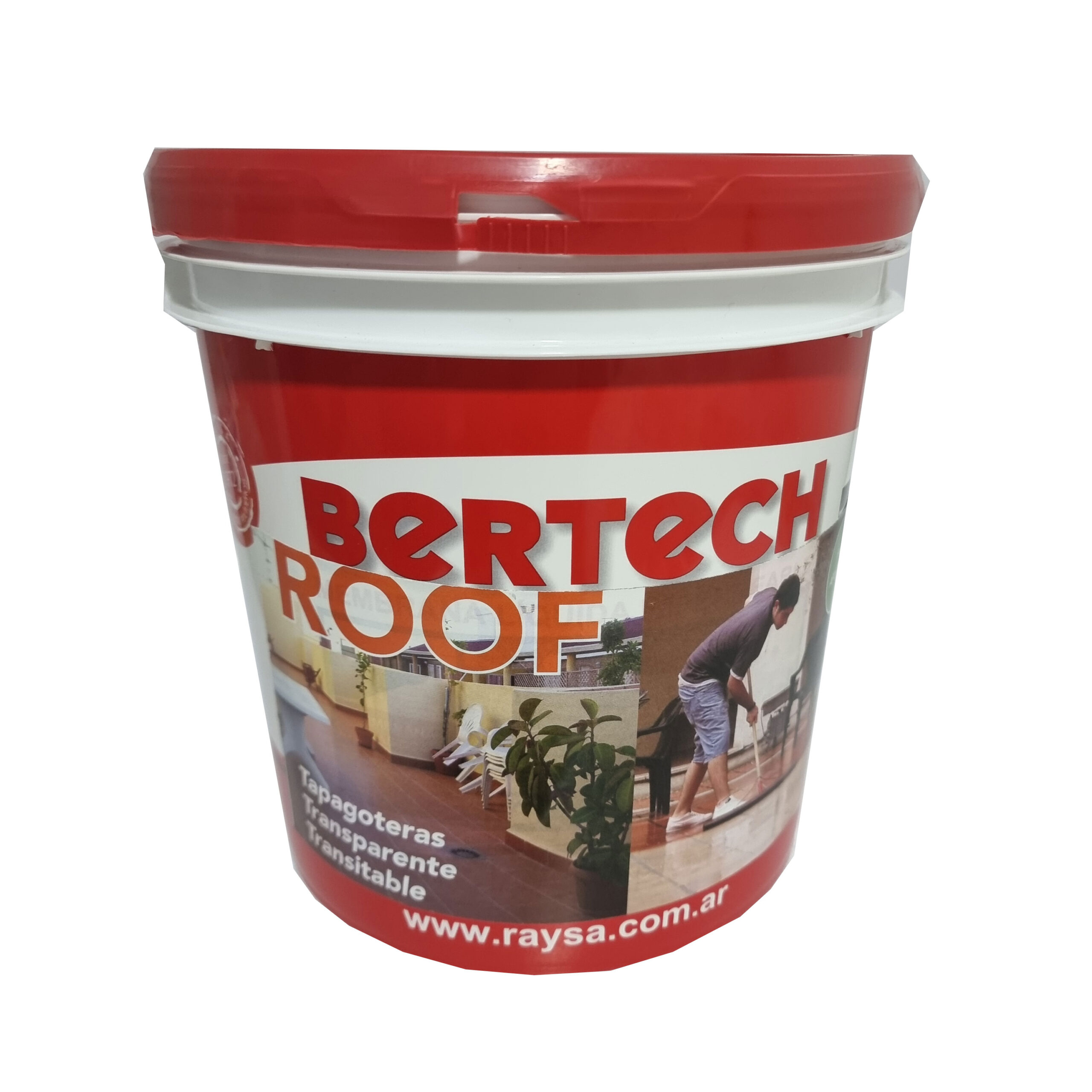 BERTECH ROOF impermeabilizante tapagoteras acrilico liquido transparente, para techos y terrazas de cerámica/baldosa roja o carpeta cementicia, para infiltracion de fisuras. Al secar forma una pelicula elástica de gran adherencia transparente TRANSITABLE. Actúa en profundidad, obstruye microfisuras internas, ya que su fluidez hace el mismo recorrido que el agua de lluvia, penetrando profundamente en el material y obturando así toda falla que encuentre. Incoloro